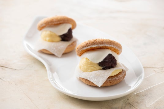 神戸の人気有名店で修業したパティシエが手がける新感覚の洋風大福。カスタード、あずき、求肥をパフで挟みます。