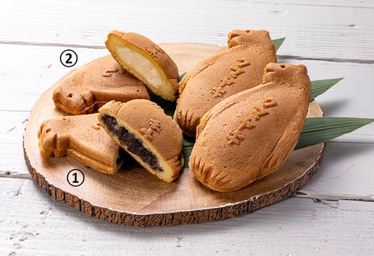 1.クマヤキ(つぶあん) 2.ヒグマ(豆乳クリーム)