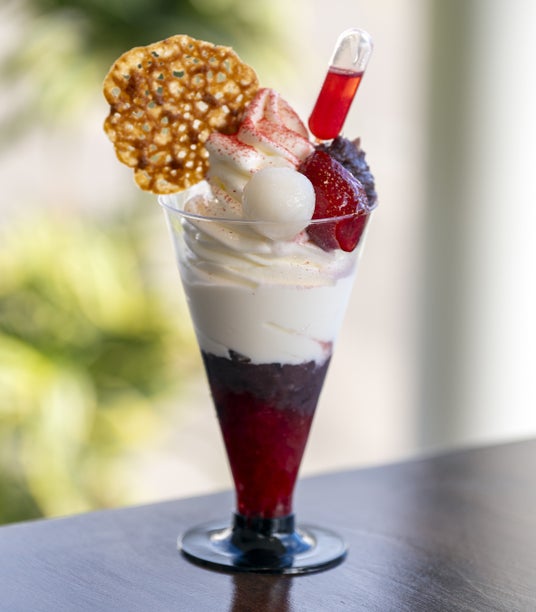 北海道産クリームチーズを使ったソフトクリームに甘酸っぱいいちごと道産あずきをご一緒に。