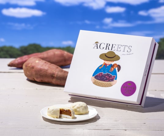 今回デビューするのは北海道のさつまいも「由栗いも」を使用した「おさつマロ」。濃厚な由栗いもの餡とふわっと軽いマシュマロを白い恋人で有名なISHIYAのホワイトチョコレートでコーティング。外側にはカリっと香ばしいキャンディーコーティングのアーモンドをトッピングしました。北海道土産の新定番を目指す「畑が育てたスイーツ」。1つでいろいろな食感が楽しめるのもこだわりです!