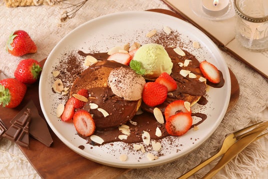 苺とチョコソースのとろける冬パンケーキ ピスタチオアイス添え ¥1650(税込)