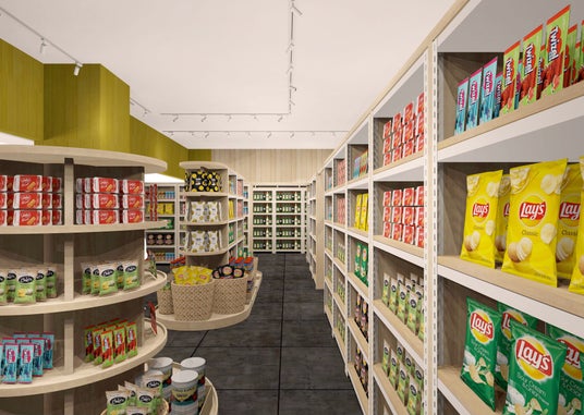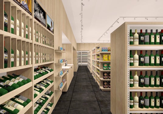 壁面にはこだわりのお酒を、中央にはクラフト食品や飲料を配置した心地よい店内。