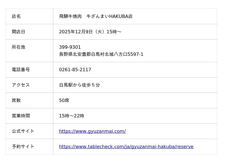 「牛ざんまい HAKUBA店」 が2025年12月9日(火)15:00にオープンいたします。