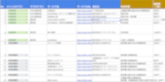 カオスマップの公開に合わせ、マップに掲載されている各サービスの「サービス名」「URL」「料金形態」「特徴」をまとめた比較一覧資料(Googleスプレッドシート/Excel形式)もご用意しました。