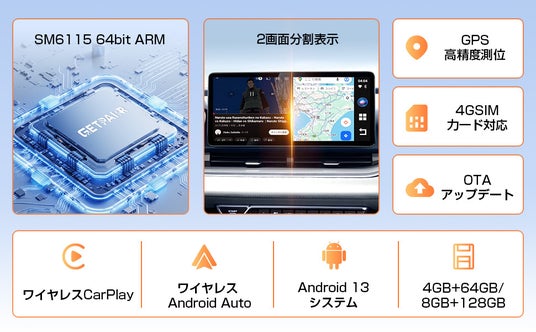 車の USB ポートに差し込むだけで、YouTube・Netflix・Amazon Prime Video・Google Maps・Spotify など、日常で使い慣れたアプリを車載画面で利用できるようになります。