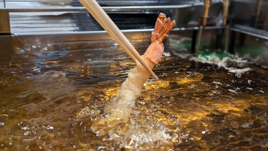 オーダーを受けてから揚げるサクサクなエビ天ぷら