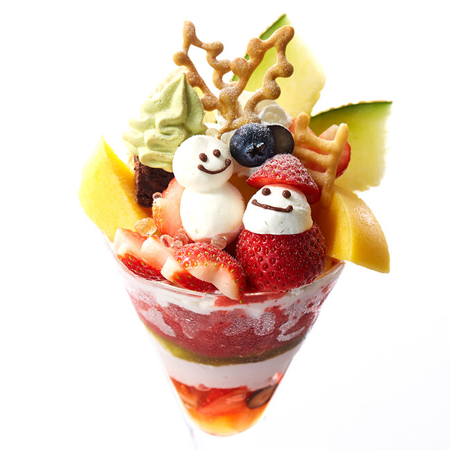 フルーツ専門店の苺を中心に、可愛いサンタや雪だるまのトッピング。店舗毎に全店違う仕立てでご提供します。お好みのデザインの店舗やお近くの店舗でぜひお楽しみください。