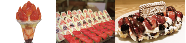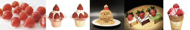 【王様の苺プリン】プリンセスいちごプリン/プリンスいちごプリン、【Pimiri cafe/ピミリカフェ】イチゴクロッフル、【Happy Berry Kitchen】いちごのアイスクレープ、【あんこスイーツラボ豆金】幸せ気分な苺モンブラン、【ふるーつなのに~昔懐かし、あの味。~】いちご飴、【SAKURA】さかえ屋×SAKURA苺カステラケーキ、【berry berry crazy】札幌いちごパフェ、【ダイワスーパー】八百屋の作る本気のフルーツサンド、ほか