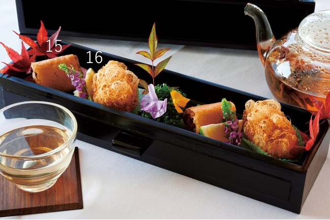 14.合鴨の黒胡椒焼き入り紫芋のチャイナ最中