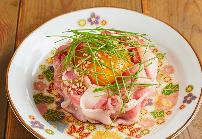 居酒屋メニューは、大衆居酒屋よりワンランク上の美味しさを目指した、ひと手間かけた料理をラインナップ。希少な国産若鶏を低温調理した「国産鶏白レバー刺し」、プリプリのえびをふんだんに使った自家製の「エビしゅうまい」、熟成黒毛和牛のバラ肉の「とろけるユッケ」、国産牛モツを使った自慢の逸品「牛モツ煮」など、手の込んだ料理をお楽しみいただけます。