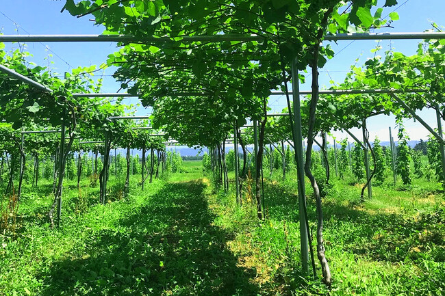 そのスタイルを象徴するのが「醸し発酵」という手法です。イタリアのフリウリ州のワインに衝撃を受けたという代表のが目指すのは、醸し発酵の白ワイン(オレンジワイン)造り。昨年近隣の農家から仕入れたシャルドネで造ったワインは、とてもパワフルな味わいになりました。今年の収穫からは、自社農園の原料ぶどうで理想のワイン造りへの第一歩を踏み出しました。