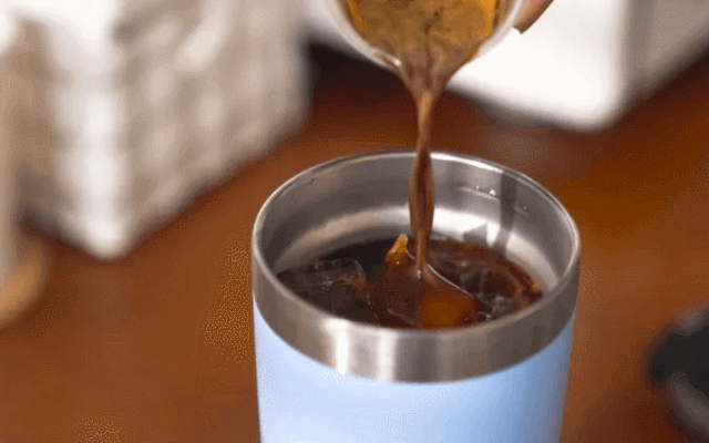 断熱性が高い真空二層構造を採用し、氷を入れたアイスコーヒーなら8~10時間も冷たい状態をキープ。