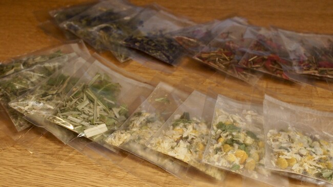 33chaの店舗にて、スタッフと一緒に貴方だけのブレンドハーブティーを製作します(8,000円)。また、製作したハーブティーは、お帰りの際にティーカップ約10杯分をパック詰めしてお渡しします。