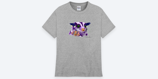 描き下ろしアート「ハンバーガーを食べるミミ」がプリントされたクラウドファンディング限定グッズ。