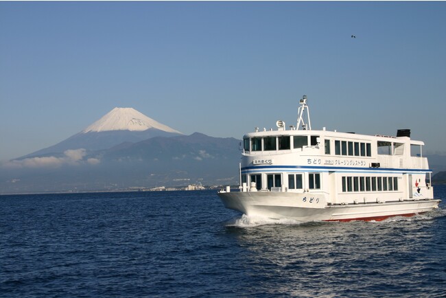 日本一高い富士山と日本一深い駿河湾の間を進む「ちどり沼津港遊覧船」は、高低差6000メートル超、世界有数のダイナミックな地形遊覧が体感できます。