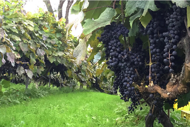 ぶどう畑は、標高の異なる2つの地区(戸沢地区、木幡地区)にあり、標高差が200m程度あるため、日照時間や昼夜の寒暖差が異なり収穫するぶどうの個性が違ってきます。その個性の違いがワインの味わいに複雑さをもたらしています。
