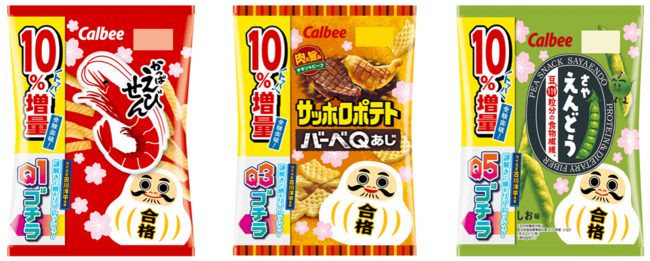 カルビー株式会社(本社:東京都千代田区、代表取締役社長:伊藤 秀二)は、頑張る受験生を応援するため、ロングセラー3品『かっぱえびせん』『サッポロポテト バーべQあじ』『さやえんどう しお味』を10%(トッパ)増量し、縁起の良いイラストやクイズ王の古川洋平さん考案の謎解きクイズを掲載した特別パッケージで、2022年12月12日(月)から数量限定で全国発売します。※2023年1月下旬終売予定。コンビニエンスストアでの取扱いはございません。
