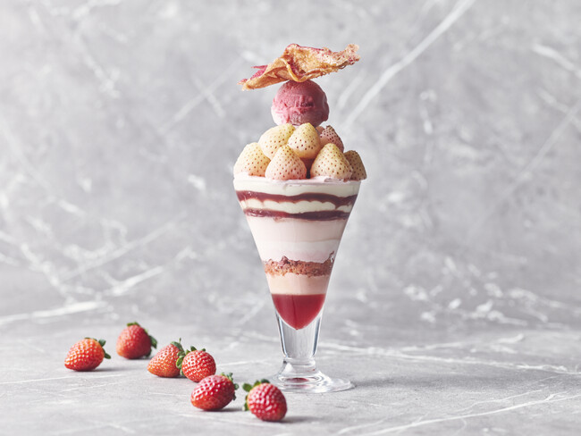 2023年最初にお届けするパフェは、毎年絶大な人気を誇るストロベリー・パフェ。今がまさに旬の赤いちごと白いちごそれぞれに、マリアージュに適したハーブを融合させることでテクスチャーを最大限引き立て、香り豊かないちごの魅力いっぱいのパフェを2種ご用意いたしました。