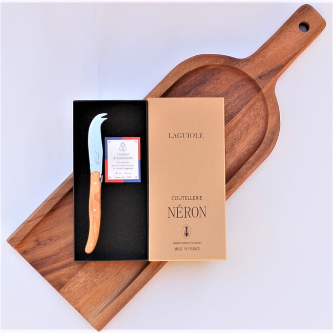 ココナッツオイル仕上げのナチュラル感たっぷりのチーズボードとフランス直輸入のライヨールの組み合わせ、チーズはもちろんスイーツやお寿司のサーブボードとしても使える大きめでロングサイズ