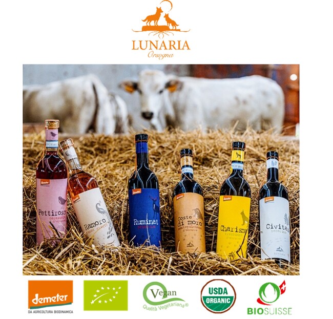 『カンティーナ オルソーニャ』の高品質への努力の結晶と評されるブランド「ルナリア」は、ビオディナミの厳しい認証デメテールの他、オーガニック、ヴィーガンの認証を得た、自然発酵で亜硫酸塩含有量が低いワインです。