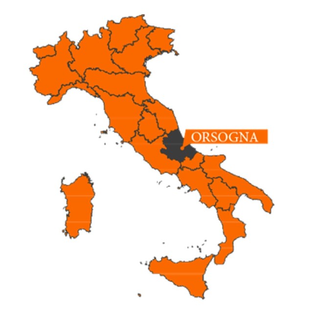 『カンティーナ オルソーニャ』は、イタリアで一番大きなオーガニック・ビオディナミ農法を実施するワイン生産者たちの共同組合です。イタリア中部のアブルッツォ州に位置し、国内でも特に人の手が加わっていないマイエッラ国立公園に隣接する土地で、30年以上もの間、自然の潜在能力を引き出す有機農法によって高品質なワインを造り続けています。その品質は、2012年のイタリア最大のワイン見本市「Vinitaly (ヴィニタリー) 」での“ベストワイナリー イン イタリー”受賞をはじめ、数々の国際的コンペティションで高く評価されています。また、手に取りやすい価格帯や、ユニークでおしゃれなラベルデザインなど、親しみやすい魅力を持っています。