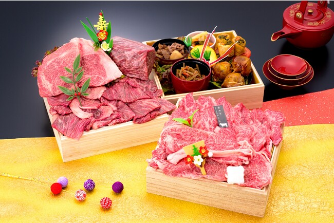 山形の魅力的な特産品を取り揃える株式会社加藤物産(本社:山形県上山市 代表取締役:小川淳)は、日本ブランド和牛 総称『山形牛』を使った贅沢なおせちを作りました。このおせちは、コロナ禍で落ち込んだ山形県の観光事業を盛り上げる為に、全国に誇れる山形の食材の素晴らしさ、そして景色の美しさを、山形に足を運べない全国の皆様に知っていただきたいという想いが込められています。山形牛の力強い味、繊細できめ細かく上質な脂を楽しめる山形牛肉おせちは、『1093楽天市場店』にて~12/11(日)まで予約注文受付中です。 ■『1093楽天市場店』 https://item.rakuten.co.jp/auc-r1093-kbs/c/0000000266/