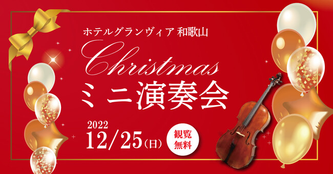 和歌山ターミナルビル株式会社(和歌山市友田町5丁目18番地、代表取締役社長 和田壽三)が運営するホテルグランヴィア和歌山は、2022年12月25日(日)16時00分からホテル1階ロビーでクリスマスミニ演奏会を開催いたします。どなたでもご自由に観覧できます。