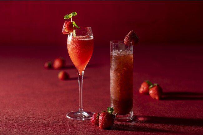 旬の苺を使った2種のオリジナルカクテル。いちごの甘酸っぱい香りに包まれる華やかなカクテルを、横浜港の絶景とともにご堪能ください。