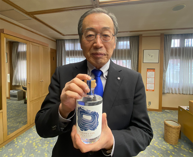 新しく蒸留されたクラフトジンの第一弾を試飲した富井俊雄市長は、「野沢温泉の風や自然を感じられる、ピュアでおいしいクラフトジンです。続くウイスキーも、野沢温泉を訪れた思い出を封じ込めた、とても期待できるものです。"と述べています。