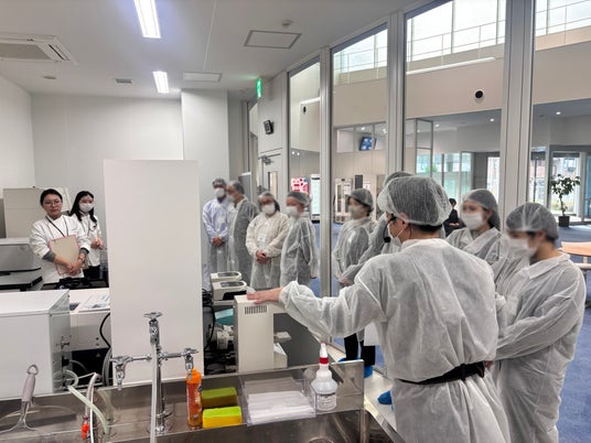 MILAB食品研究室の分析機器を説明している様子