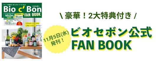 ◎ビオセボンFAN BOOK 好評発売中!ビオセボンのこだわりや人気アイテム、おすすめレシピを一冊にまとめた「FAN BOOK」が、宝島社より発売中です。豪華な2大特典付きの特別仕様で、店舗・オンラインストアのいずれでもお買い物が10%オフになるほか、店舗ではオーガニック植物性ミルク「イソラビオ」250mlを1本プレゼントいたします。1年を通してビオセボンをよりお得にお楽しみいただける一冊です。