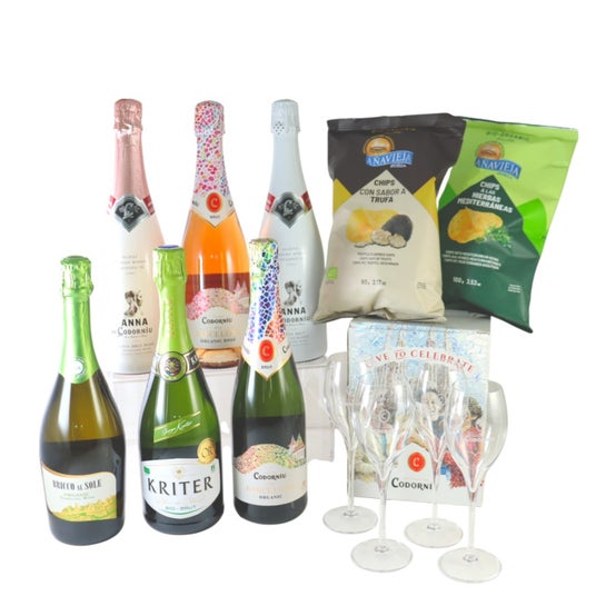 総額12,500円相当!新年のお祝いにぴったりの、自然派スパークリングワイン6本セットです。フランス・イタリア・スペインのスパークリングを飲み比べできるお得なセットで、「コドルニウ」のオリジナルグラス4脚付き。人気のオーガニックポテトチップスと一緒にお楽しみください。