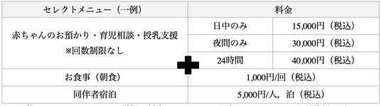 ホテル宿泊や育児相談、授乳支援といった基本的なプランに加え、3つの託児プランや食事等のオプションを自由に選択することで、利用者が自身の予算や必要なサービスに合わせてカスタマイズが可能です。予約や利用のハードルを下げ、より身近で使いやすい産後ケアを提供いたします。