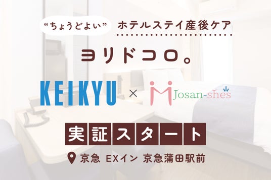 株式会社Josan-she's(本社:東京都中央区、代表取締役CEO:渡邊愛子、以下ジョサンシーズ)は、京浜急行電鉄株式会社(本社:横浜市西区、取締役社長:川俣 幸宏,以下 京急電鉄)と連携し、2026年1月27日(火)~1月29日(木)の期間、京急 EXイン 京急蒲田駅前にて、ホテルステイ産後ケア事業「ヨリドコロ。」の実証(以下 本実証)をスタートいたします。