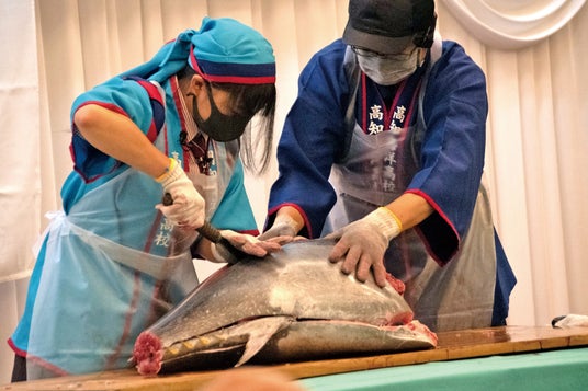 〈野島水産〉まぐろ祭り【イベント】高知海洋高校 ツナガール まぐろの解体ショー
