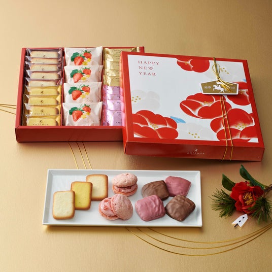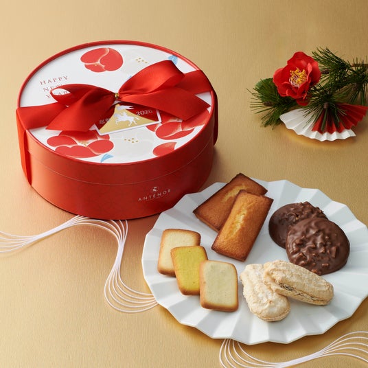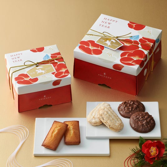 大切な方への年末年始のご挨拶におすすめな焼き菓子を、椿や午(うま)年をロゴマークで表現した絵馬を添えた華やかなパッケージに詰め合わせ、12月18日(木)より発売いたします。発酵バターが香るフィナンシェや、芳醇なレーズンサンド、ふうわり食感の苺のクリームサンド、チョコレートに包まれたショコラ・アマンドやラングドシャ等、多彩な詰め合わせでお届けいたします。公式オンラインショップでは12月11日(木)より先行販売いたしますのでぜひご利用ください。