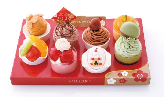お正月気分を盛り上げてくれる、小さめサイズのケーキ。人気の味わい8種類のお詰め合わせです。
