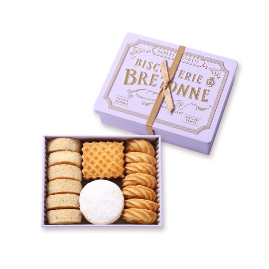 華やかなスミレ色の缶に香りや風味を引き出した4種のクッキーをとじ込めた、ティータイムにぴったりなクッキー缶。昨年ご好評いただいた、芳醇なバニラが香る「バニラ・フィアンティーヌ」や、香り高いアールグレイにオレンジのアクセントを添えた「サブレ・アールグレイ」、アプリコットのコンフィチュールをしぼった繊細な食感の「アプリコット」の3種に、発酵バターの豊かな風味が広がる奥深い味わいの「サブレ・ブルトンヌ パヴェ」を新たに加えた4種の美味しさがお楽しみいただけます。