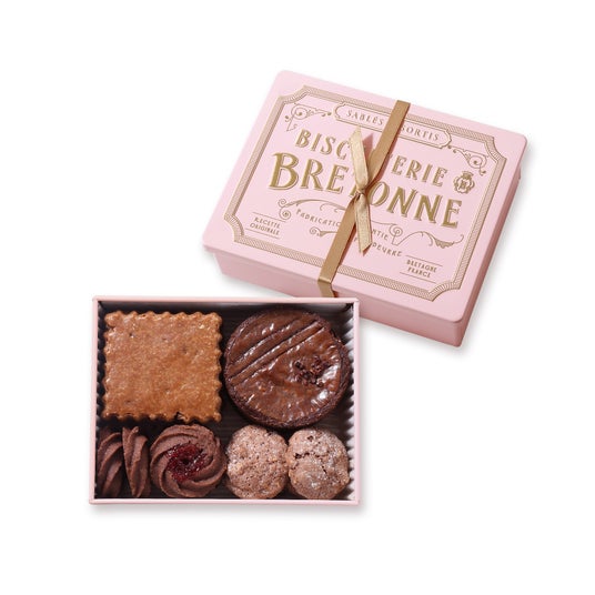 可憐なピンク色の缶に4種のクッキーをアソートした、ショコラ好きに贈るクッキー缶。発酵バターの豊かな風味と濃厚なショコラを合わせた「ガレット・ブルトンヌ ドゥミ フィーヌ〈ショコラ〉」や、サクッと香ばしい生地にチョコチップをふんだんにとじ込めた「ショコラチップ」の昨年ご好評いただいた2種と、香ばしいナッツを合わせたザクザク食感のメレンゲ「クロッカン・ショコラ」、ショコラ生地に甘酸っぱい苺のコンフィチュールをしぼった「ショコラ・フレーズ」の新しく加わった2種を合わせた4種の美味しさがお楽しみいただけます。