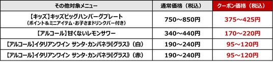 ※2 キッズ&アルコールメニュー半額クーポンは、2025年11月20日より、すかいらーくアプリ等のクーポン配布媒体にて配布しております