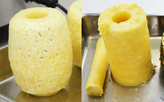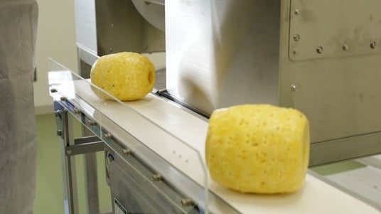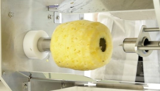 皮むき・芯抜き・排出の一連の流れを自動で行うため、毎日大量にパイナップルを処理する工場に最適です。