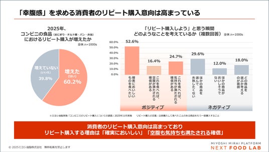 さらに、消費者調査の結果から、「幸腹感」と「リピート購入(※2)」の関係に着目し検証。消費者は、再現性のある「幸腹感」を求めて「リピート購入」を増やしていることが分かりました。