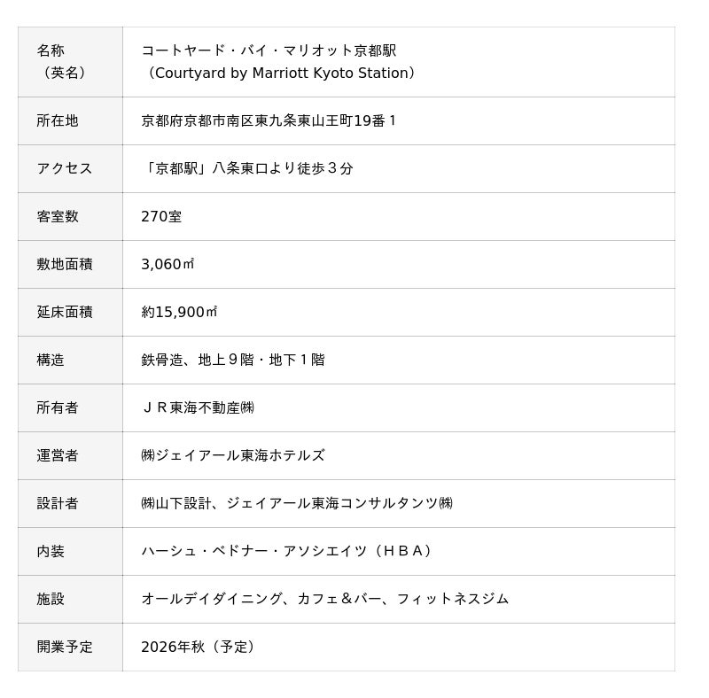 この度、当社グループ(※1)がマリオット・インターナショナルと推進している「コートヤード・バイ・マリオット京都駅」が、2026年秋(予定)に開業することが決定しました(※2)。本ホテルは、今年8月に開業した「コートヤード・バイ・マリオット京都四条烏丸」に続く、当社グループとして京都市内2施設目の同ブランドとなります。