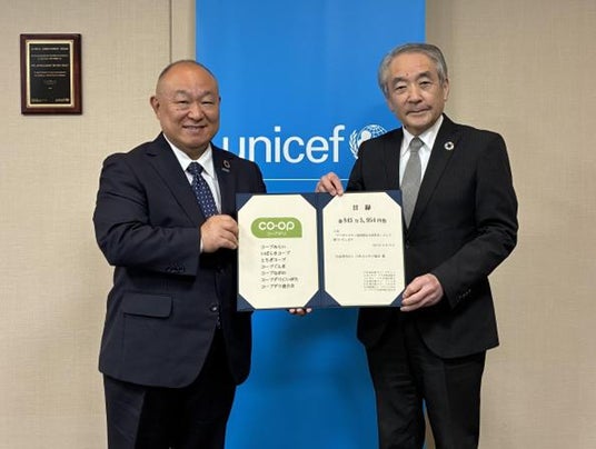 日本ユニセフ協会 早水研専務理事(右)とコープデリ連合会 熊崎伸理事長