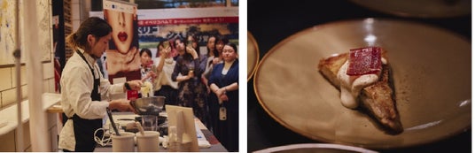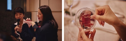 ASICIの熟練職人による生ハムの切り分け実演は、芸術そのもので、彼女の精密で洗練された技法によって、ゲストは切り分けるたびにハムの香りと風味が増す様子を実感した。間近でこの職人技を目撃した感動は、驚きと称賛の声となり、そして、イベリコハムの「マサ」(最もジューシーとされる部位)を使用した5年熟成の逸品も来場者の印象に残った。