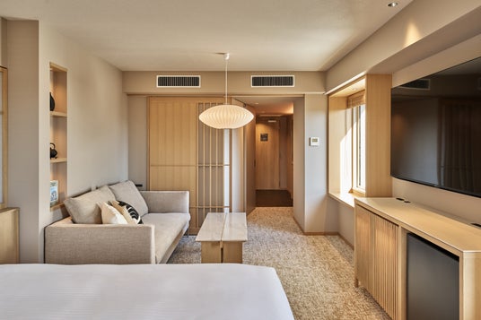 今回のリニューアルで客室(全128室)は、日本の伝統的な要素を取り入れながら、北欧らしいオーク材を基調としたデザインで、「和」と「北欧」が調和する洗練された空間に仕上げました。各客室にあったデスクを撤去し、代わりにベンチやソファを新設・配置。大型スーツケースで旅行する訪日外国人を想定し、収納スペースも確保することで、より広く快適にお過ごしいただけるよう配慮しています。