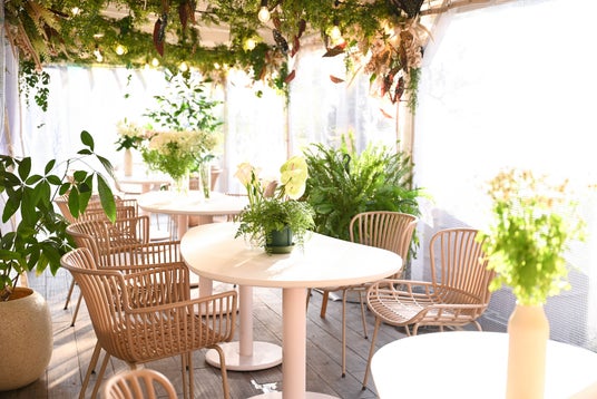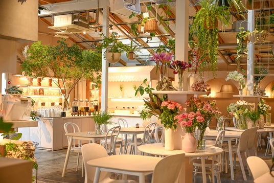 空間デザインでは、花屋をルーツに持つブランドらしさをより引き立てるため、店内の花やハーブの装飾を増やし、まるで庭園に足を踏み入れたかのような没入感のあるガーデン空間へと進化させました。テーブルや椅子のカラーも上質なトーンに刷新し、空間全体の統一感を演出しております。