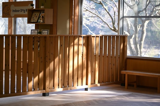 4.レストエリア 屋内ドッグラン内に、飼い主さんが腰掛けるベンチを新設いたしました。わんちゃん関連の本もご自由にお読みいただけます。