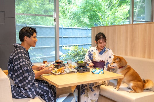 屋内ドッグランでは、窓から見える緑を感じながら思いっきり駆け上がる丘を新設。また、館内ではわんちゃん顔出しパネルや癒しのオーディオエリアを新設いたしました。その他、わんちゃんと楽しめる施設コンテンツを追加いたしました。この機会にぜひ、わんちゃんとずっと一緒の温泉旅行をお楽しみください。