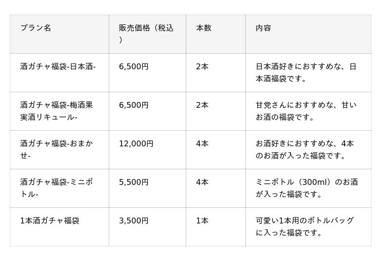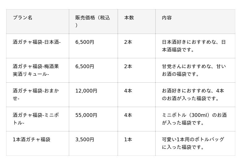 福袋プラン一覧